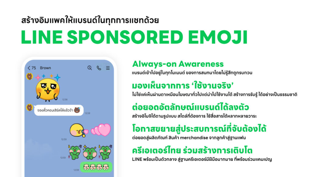 การใช้ Sponsored Emoji บน LINE คือการวางตำแหน่งแบรนด์ให้อยู่ในทุกโมเมนต์ของชีวิตผู้บริโภค โดยมีข้อดีที่นักการตลาดไม่ควรมองข้าม เช่น