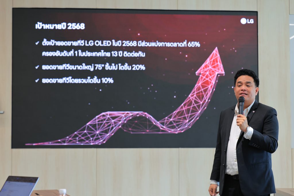 นายอำนาจ สิงหจันทร์ หัวหน้าฝ่ายการตลาด บริษัท แอลจี อีเลคทรอนิคส์ (ประเทศไทย) จำกัด เปิดเผยว่า “ความสำเร็จของแอลจีเกิดจากการวางกลยุทธ์ที่เข้าใจพฤติกรรมผู้บริโภคอย่างลึกซึ้ง พร้อมนำเสนอสินค้าที่มีคุณภาพระดับโลก ผสานนวัตกรรม AI และดีไซน์ล้ำสมัย โดยในช่วงไตรมาสสุดท้ายของปี บริษัทมุ่งหวังดันยอดขายทีวี OLED ให้ครองส่วนแบ่ง 65% และผลักดันยอดขายทีวีขนาดใหญ่ 75 นิ้วขึ้นไปให้เติบโตไม่ต่ำกว่า 20%”