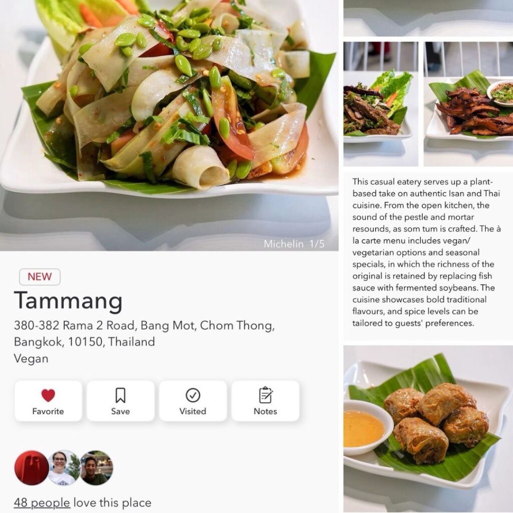 - Tammang (2025): The first vegan restaurant in Thailand to be explicitly listed in the Michelin Guide.