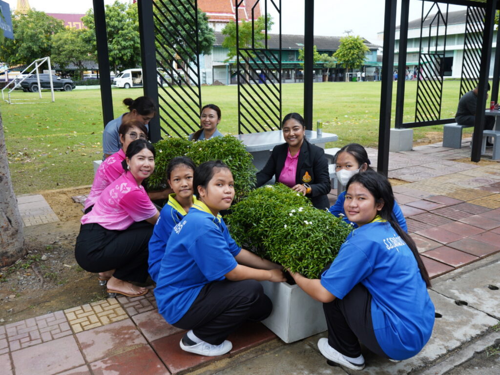 – ปลูกต้นไม้พร้อมปรับภูมิทัศน์ เพื่อสร้างบรรยากาศในการเรียนรู้นอกห้องเรียน