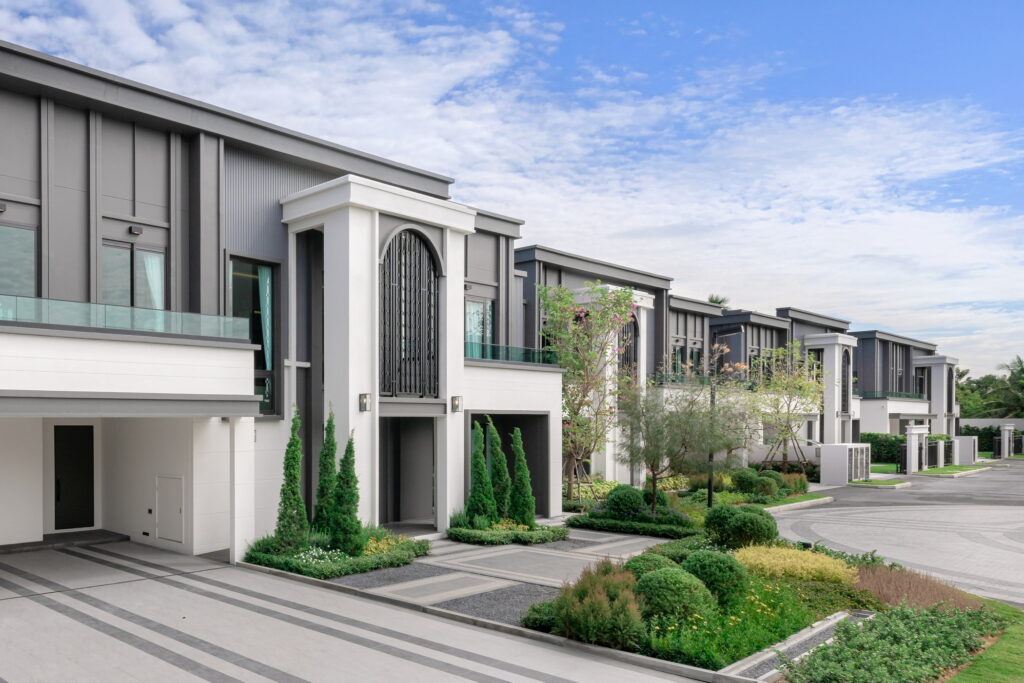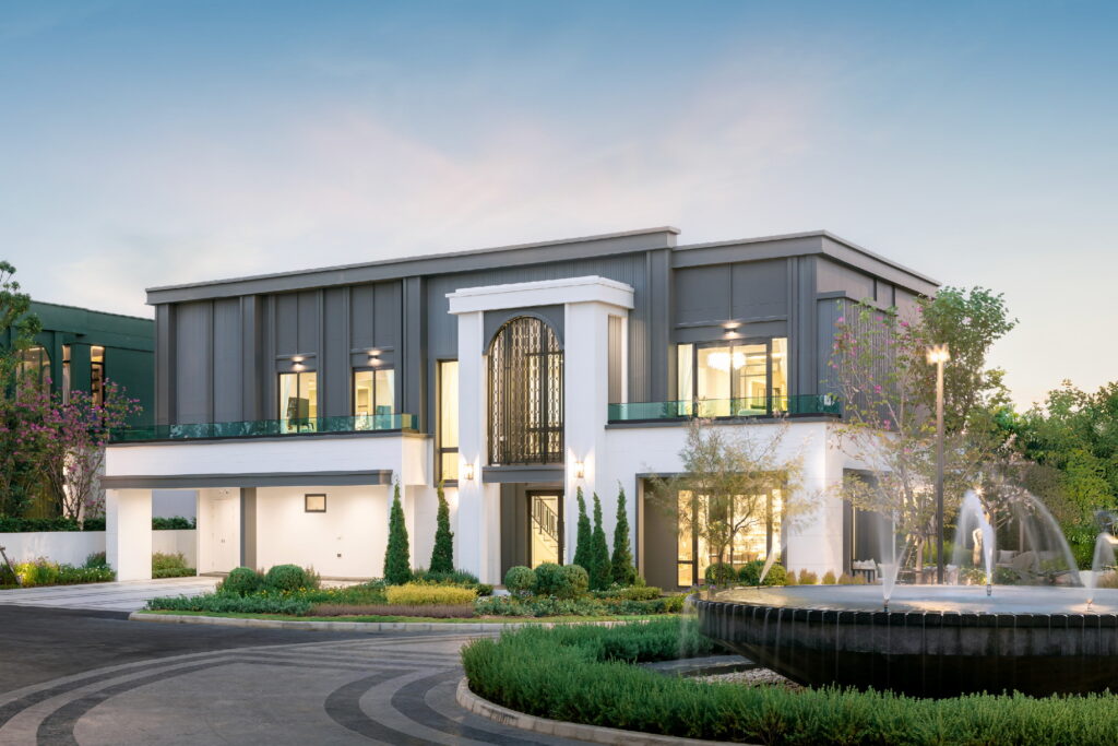 · บ้านทราฟัลการ์(TRAFALGAR) บ้านเดี่ยว 2 ชั้น ขนาดที่ดินเริ่มต้น 100 ตารางวา พื้นที่ใช้สอย 500 ตารางเมตร ประกอบด้วย 4 ห้องนอน / 5 ห้องน้ำ / 1 ครัวไทย / 1 ห้องอเนกประสงค์ / 4 ที่จอดรถ และ 1 ห้องแม่บ้าน